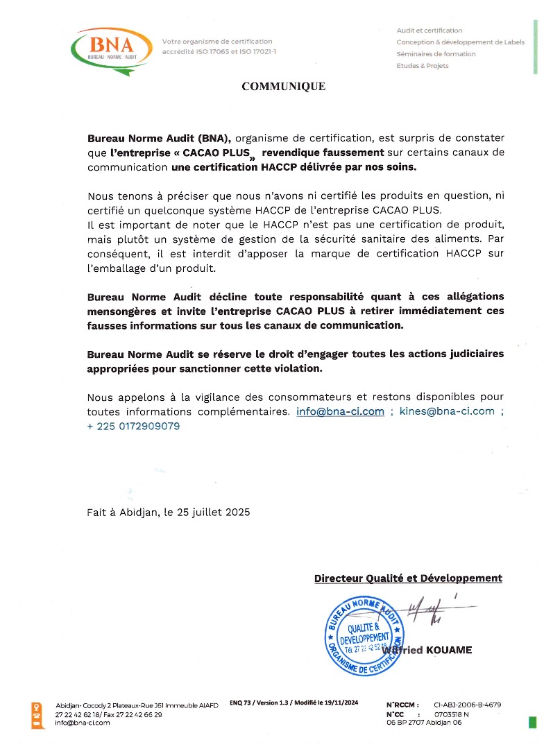 Bureau Norme Audit (BNA) a organisé à l’endroit des membres ...